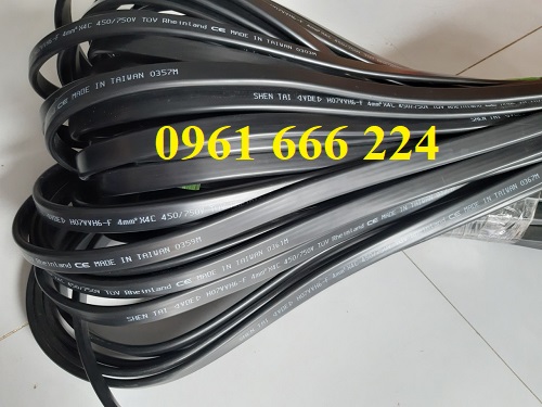 Cáp dẹt cầu trục 4C x 4mm có 4 sợi mỗi sợi có tiếp điện 4mm bên ngoài có võ bọc bằng nhựa cách điện, chuyên dùng cho hệ thống điện cầu trục, cổng trục, điện than máy…