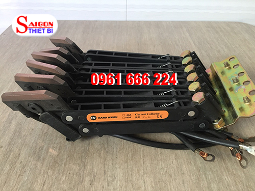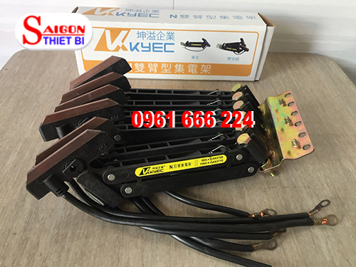 Chổi lấy điện cầu trục 6P60A có thiết kế gồm 3 tay lấy điện tương ứng với ray điện cầu trục 6 pha, Chổi lấy điện cầu trục 6P60A có rất nhiều hãng như: ITS, Kyec, Hard work...